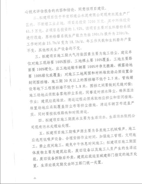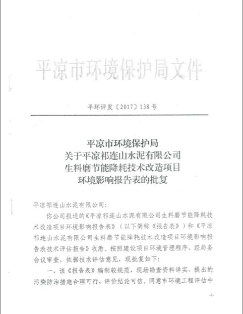 平凉祁连山水泥有限公司生料磨节能降耗技术改造项目 |
