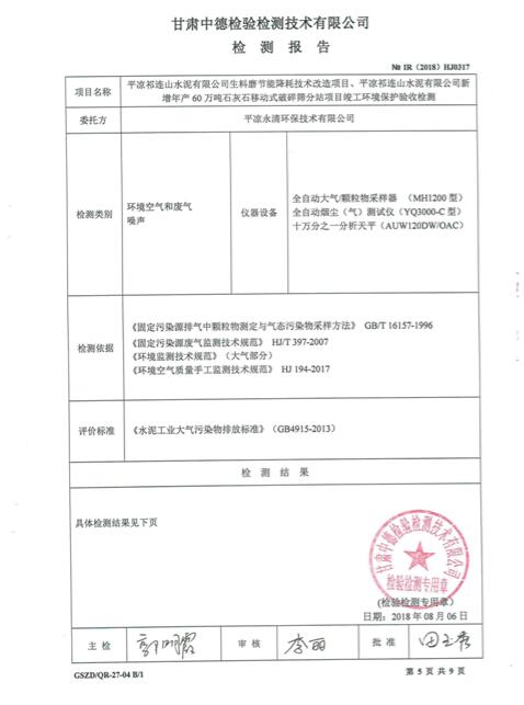2018年7月20日,平凉祁连山水泥有限公司委托平凉永清环保技术有限公司开展平凉祁连山水泥有限公司生料磨节能降耗技术改造项目环境保护验收工作任务,平凉永清环保技术有限公司在现场勘验的基础上提出了竣工验收监测方案,于2018年7月23号,委托甘肃中德检验检测技术有限公司对本项目大气、噪声进行了验收监测,平凉永清环保技术有限公司编制完成了该项目验收监测表。
