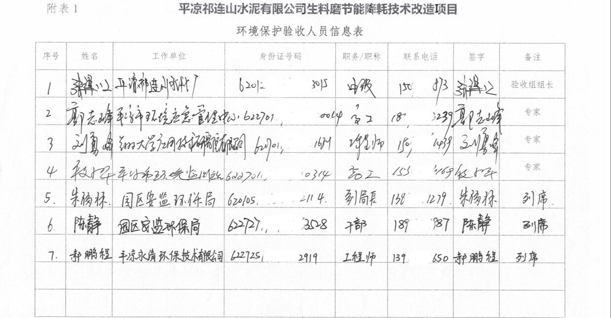 平凉祁连山水泥有限公司生料磨节能降耗技术改造项目竣工环境?;?/h3>