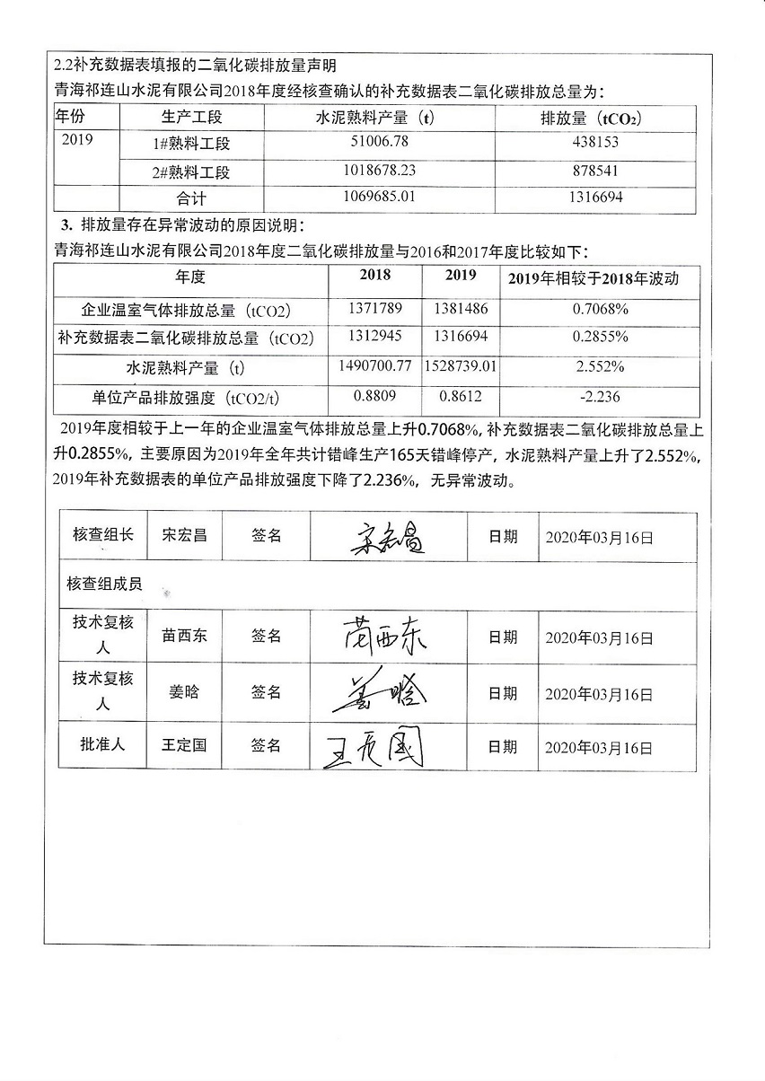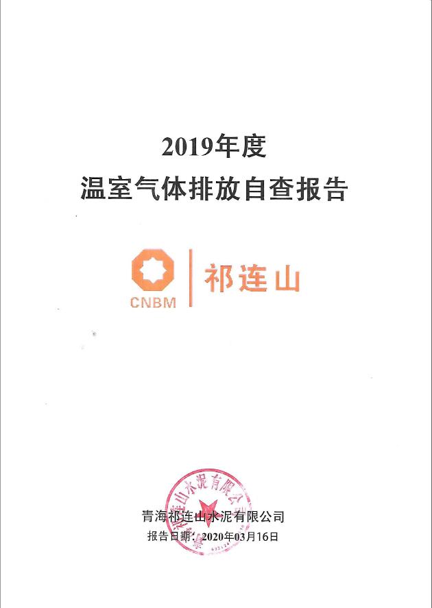 青海祁连山水泥有限公司 2019年度温室气体排放核查报告公示