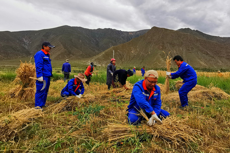 祁连山山南项目部党支部负责人闻讯后,立即与贡嘎县昌果乡派出所党支部联系,抽调部分工作人员与警员共同组成“助民抢收队”,帮助索朗曲珍一家抢收青稞,解决其燃眉之急。