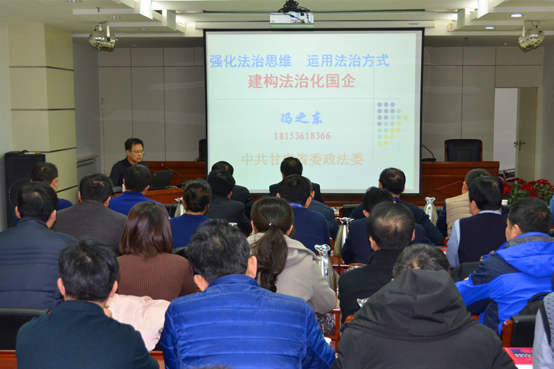 2017年12月22日,公司在三楼会议室组织“依法治企”、“合同法律风险防范”主题的法律实务讲座,邀请甘肃省委政法委执法督导处处长冯之东、白银有色集团股份有限公司法律事务部负责人多英璘进行专题讲授,公司副总裁李生钰、吕克俭、林海平、王学政、总裁助理李向春及总部相关管理人员、各子公司分管法务工作领导及法务联络员共计60余人参加了讲座培训。