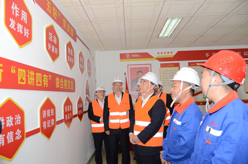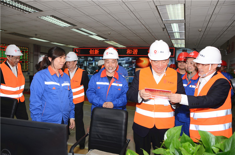 随后宋志平一行前往日产5000吨新型干法水泥生产线现场和调度室,沿途观看党员示范岗、党员责任区,勉励党员示范岗的员工要充分发挥党员引领和带动作用,用实际行动发挥模范作用,影响和带领周围的同事爱岗敬业,促进各项工作。
