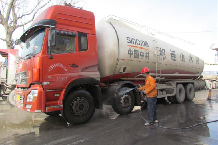 为积极响应兰州市委、市政府号召,切实履行企业社会责任,落实兰州市大气污染防治工作相关部署,兰州祁连山商砼公司购置洒水车、专业洗车设备对厂区道路、生产区扬尘点以及进出厂车辆进行洒水降尘和喷洗除尘,最大限度控制厂区扬尘。图为公司职工对车辆进行喷洗除尘的场景(陈孝政/报道)