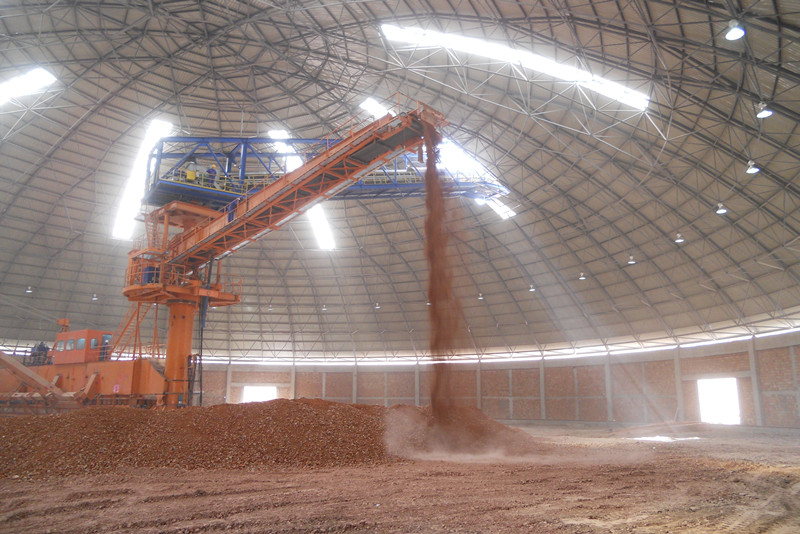 日前,漳县公司二线项目石灰石预均化系统进入试运行阶段,图为布料机布料的情景。(王丽红/报道)