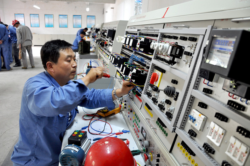 7月28日—8月5日,永登公司组织电工、钳工、焊工、中控(窑、磨)操作员和控制工开展了职工技术比武实际操作技能考核。图为电工正在进行实际操作技能考核的情景。