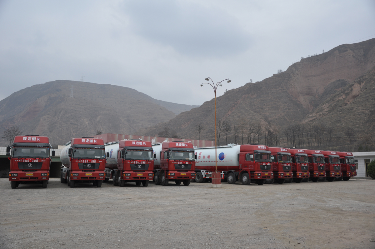 随着甘谷公司120万吨生产线的投产,甘谷公司为水泥出厂做好了准备,为满足大宗水泥用户和发展散装水泥,该公司新近准备了16个散装水泥存储罐和48辆散装水泥专用罐车等待使用。图为即将投入使用的散装水泥专用罐车。 (甘谷公司 张宏儒 摄)