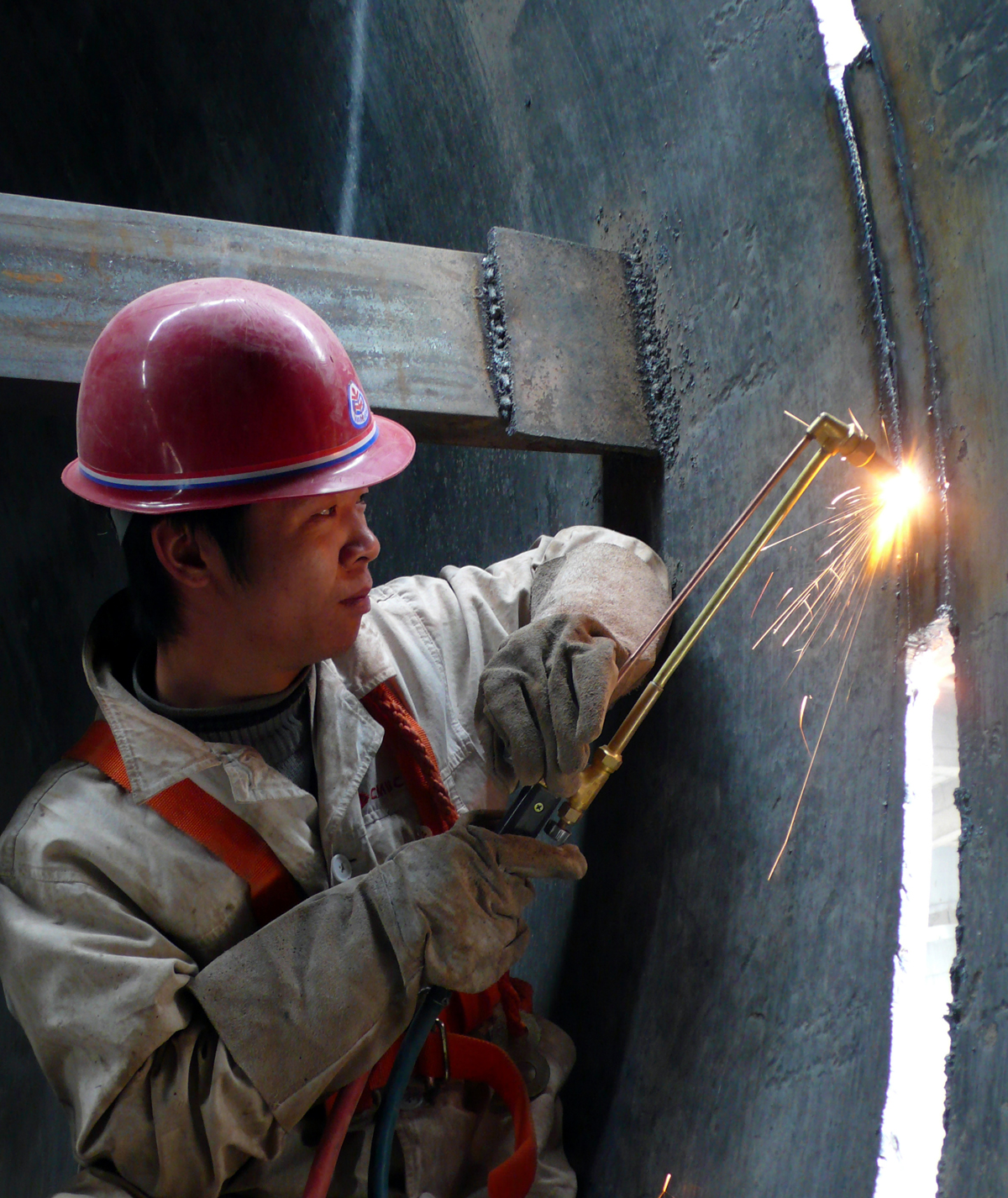 日前,民和公司2000d/t生产线环保技改暨窑体大修工作全面铺开,本次技改大修主要是对水泥窑煅烧带实施更换,对篦冷机和窑头电收尘进行修复,对窑尾电收尘实施电改袋改造。此外,还要对增湿塔、窑尾废气管道、窑头罩、喷煤管、石灰石破碎机、生料磨、煤磨及要系统浇注料等进行维修或更换。图为检修人员一丝不苟工作的情景。(红古公司 王旺军 报道)