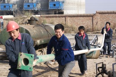 为了美化亮化厂区环境,完善基础设施建设,日前,青海公司组织维修部电工在厂区内主要道路两旁安装路灯,计划用五天时间安装50盏路灯。图为电工正在搬运路灯的情景。(青海公司 王普)