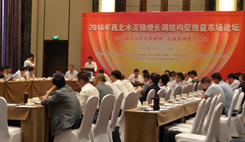 本网讯(记者 白玉芳)7月22日,由我公司承办的2016年西北水泥稳增长调结构增效益市场论坛在兰州举行?;嵋槲迫婀岢构旆2016]34号文件精神,做好西北水泥行业供给侧结构性改革展开研讨,并就制订西北地区水泥市场协调自律联席会议制度机制,以及西北四省水泥企业自律公约进行商定。中国水泥协会常务副会长兼秘书长孔祥忠、甘肃省工信委副主任郝文杰、陕西省工信厅副调研员陆莹、陕甘宁青四省水泥(建材)协会负责人、以及陕甘宁青四省大中型水泥企业高层领导出席会议?;嵋橛筛仕嗍〗ú墓ひ敌崃跣癖龌岢ぶ鞒?。公司董事长脱利成在会上发表重要讲话,总裁刘继彬发言并主持讨论相关制度和公约。