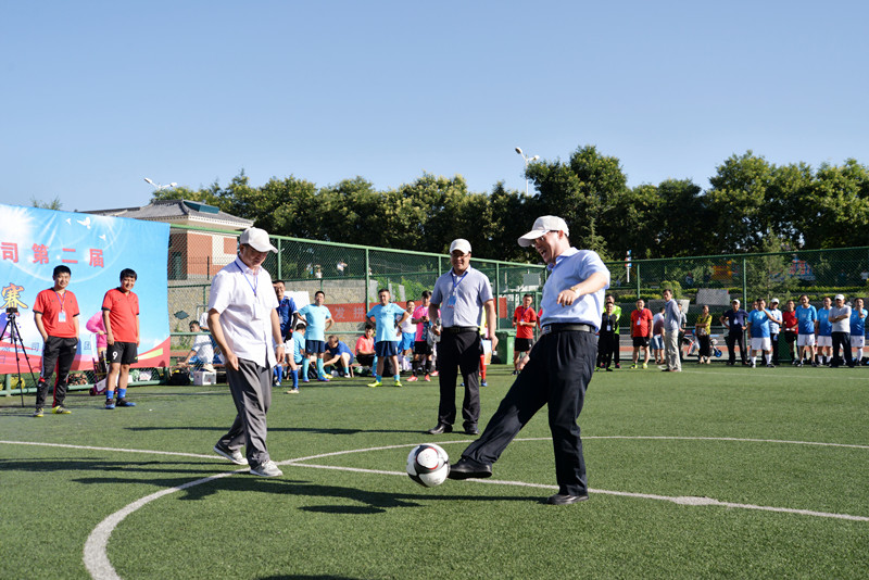 本网讯 8月9日—11日,公司第二届青工五人制足球赛在平凉市体育场举行。公司党委书记蔡军恒出席开赛仪式,公司党委副书记、纪委书记、工会主席魏士渊致开赛辞,平凉公司党委书记、总经理董晔国致欢迎词。来自总部机关和部分子公司的13支代表队参加比赛。蔡军恒、魏士渊、董晔国走上球场共同为比赛开球。