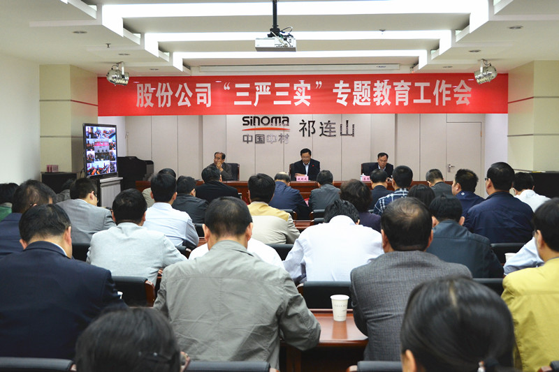 本网讯 5月13日,公司召开“三严三实”专题教育工作视频会。传达学习了上级党组织“三严三实”专题教育工作会议精神,对公司开展“三严三实”专题教育工作进行安排部署。公司董事长、党委副书记脱利成主持会议并传达了中央和中材集团“三严三实”专题教育工作会议精神;党委书记蔡军恒作了“三严三实”专题教育党课辅导;党委副书记魏士渊代表公司党委对开展“三严三实”专题教育工作进行安排部署。