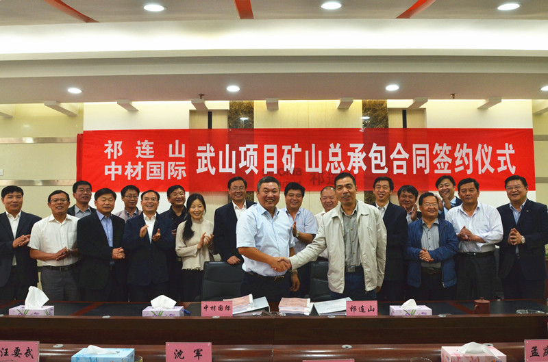 本网讯 5月21日,公司与中材国际签署武山瓦渣沟石灰石矿山工程总承包合同。公司领导脱利成、刘继彬、蔡军恒、李生钰与中材国际领导沈军、印志松、陆泳、孟庆好等11人出席签约仪式。公司总裁刘继彬、中材国际工程公司总经理印志松共同签署了工程总包合同。