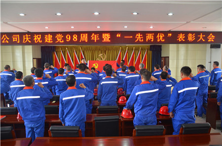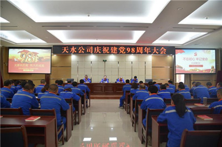 青海公司组织开展庆祝建党98周年暨“一先两优”表彰大会 天水公司开展庆祝建党98周年大会并召开主题党课