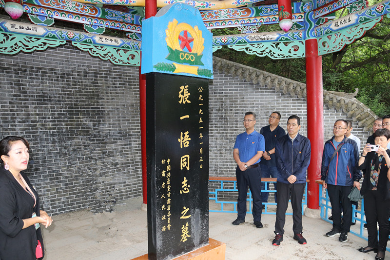 上午10时30分,在蒙蒙细雨中,全体党员参谒了榆中县卧龙湾革命烈士公墓,向革命烈士纪念碑敬献花篮并鞠躬致敬。在张一悟烈士纪念亭,全体同志聆听了张一悟烈士为甘肃党组织的建设发展做出的重大贡献以及在兰州战役中牺牲的915名革命烈士的光辉事迹。随后,在张一悟纪念馆,全体同志面对党旗庄严宣誓,重温入党誓词,并进行了参观。在一件件革命文物,一处处复原场景前,全体同志驻足观看,仔细瞻仰。近一个小时的讲解中,大家认真聆听,深入思考,在加深对张一悟同志为代表的的甘肃早期革命同志英雄事迹了解的同时,也进一步深化了大家对甘肃乃至中国革命发展历史的认识。