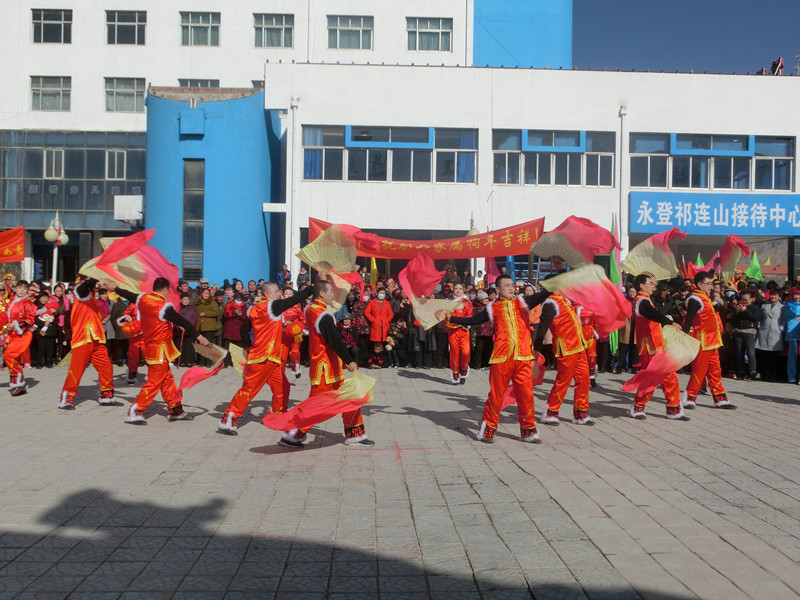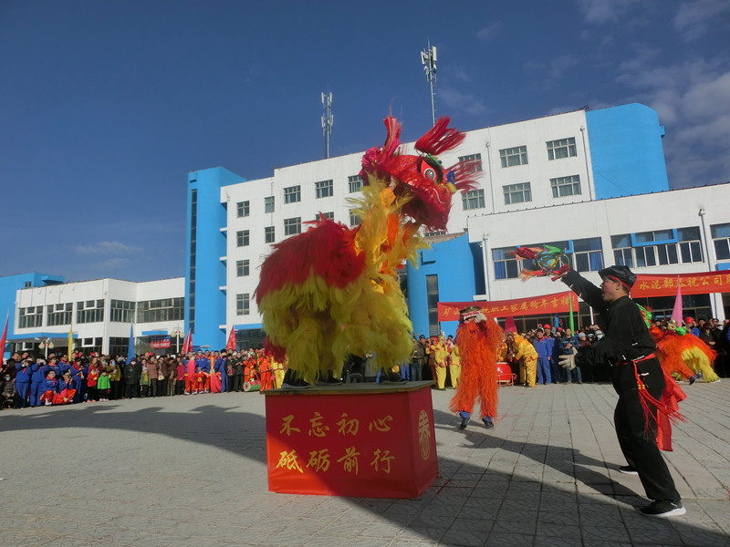 上午9:30,俱乐部前鞭炮齐鸣、锣鼓喧天。由各基层工会及离退休职工组成的七支表演队伍身着盛装,以传统的文化形式表达着自己对新生活的向往,以激情澎湃的方式展现着祁连山职工昂扬向上的精神面貌,用激情、用欢乐共同祝愿永登公司2018年各项指标芝麻开花节节高?;阊菘记?,公司领导分别为舞龙和舞狮点睛、披红,提振了舞龙和舞狮的精气神。