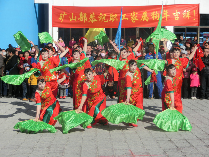 听,太平鼓的声音响彻了云霄,震天的鼓声,表达着他们对伟大的祖国、对我们的企业深深的祝福。看,火红的灯笼,火红的舞绸,是他们对美好生活红红火火的期盼。