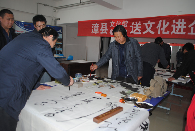 翰墨情意浓 文化进企业。2月15日,漳县公司邀请来自漳县、岷县等地的10名书画家举行“三阳开泰、新春报喜”送文化进企业活动,书画家们泼墨挥毫、尽抒胸臆,为企业留下了一幅幅生动且富有意义的书画作品,弘扬了中华民族文化艺术,也为企业增添了文化色彩。(王丽红/报道)
