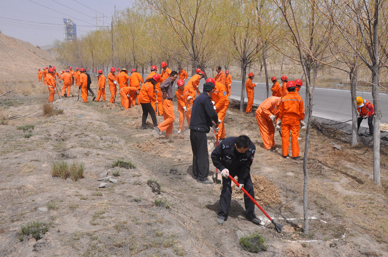近日,永登公司党委组织开展“我为厂区添美丽”义务劳动,将每周五下午确定为义务劳动日,动员、引领广大职工积极参加创建一级安全生产标准化企业活动,充分发挥机关党员、团员和管理人员的模范带头作用。在第一个劳动日里,永登公司党委开展了植树活动,种植树苗300余棵。(石国富/报道)