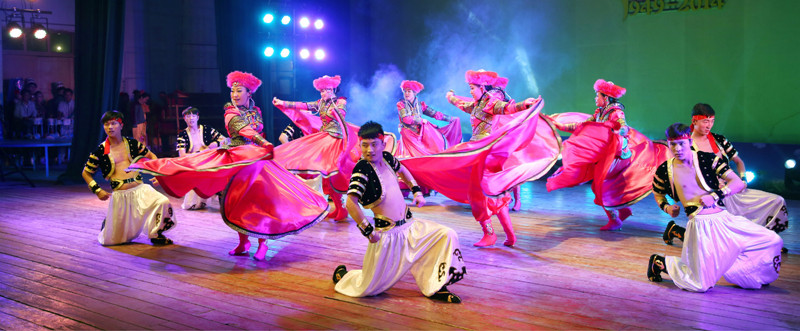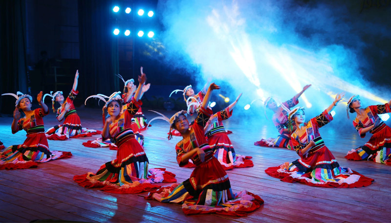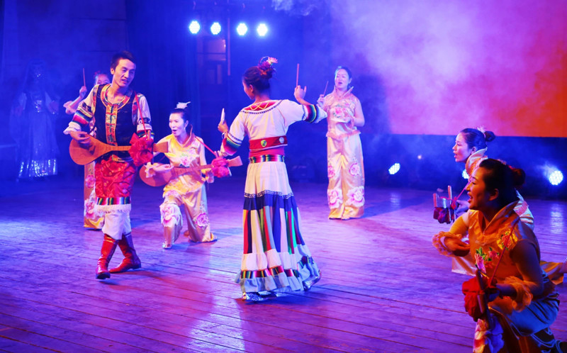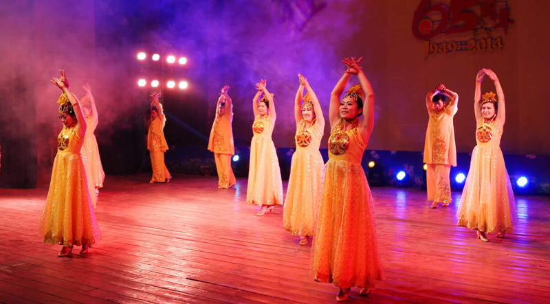 欢快的舞蹈,祝福的歌声,伴随着观众热情的掌声,营造出欢乐喜庆的气氛。(张雅妮/报道 胡金铭/摄影)