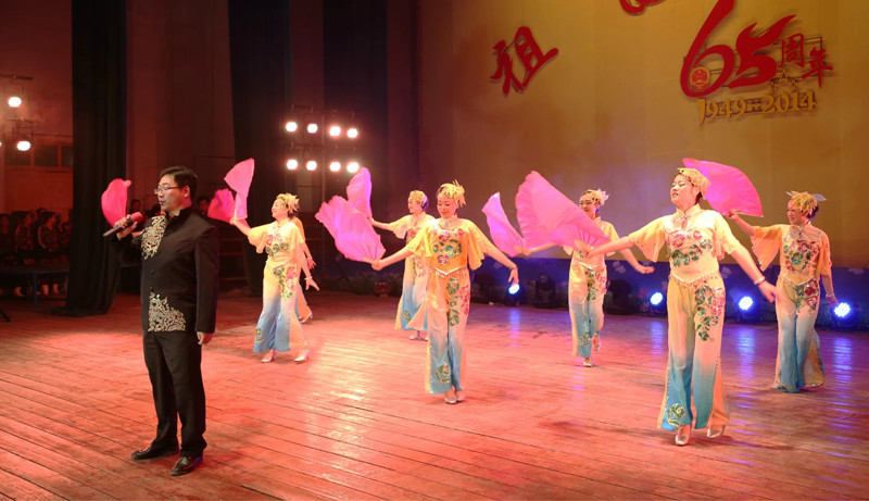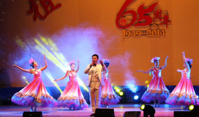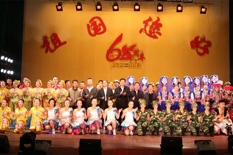 本网讯 祁连山下欢歌笑语庆祖国65周岁华诞,神州大地中华儿女豪情满怀谱和谐篇章。9月22日晚,永登公司工人俱乐部灯火辉煌,歌声嘹亮,舞姿翩翩,由股份公司党政工组织联合举办的“祖国您好”——祁连山系统企业庆祝建国65周年职工文艺汇演精彩上演。公司领导脱利成、蔡军恒、李生钰、魏士渊、罗鸿基和部分子公司党政工主要负责人及2000多名职工家属兴致勃勃地观看了演出。