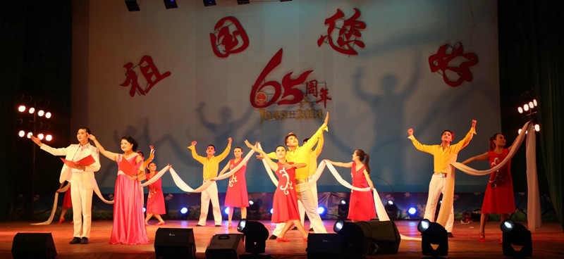 演出在永登公司百人大合唱《迎风飘扬的旗》、《共圆中国梦》嘹亮的歌声里拉开帷幕。来自总部机关及13个子公司的近200名职工以舞蹈、独唱、相声、诗朗诵、琵琶弹唱、歌伴舞等形式,深情歌颂了新中国成立65年来祖国发生的翻天覆地的变化,热情讴歌了企业伴随新中国的发展而成长、壮大的辉煌历程,表达了祁连山儿女对祖国生日的衷心祝福和一心向党,为祖国、为企业奉献的无私情怀。舞蹈《盛世欢歌》、《黄河畅想》、《不能忘却的记忆》和《尖刀任务》热情奔放,歌伴舞《欢聚一堂》、《跟你走》、《没离开过》,情感饱满,深切表达了公司职工热爱祖国、祝福祖国的心声?!恫厍椤?、《情满草原》、《欢迎来到雪域》、《天堂草原》、《花儿为什么这样红》、《采花》,分别用藏族、蒙古族、塔吉克族和汉族舞蹈,生动展现了祖国各族人民热爱生活、热爱家乡的美好心愿。舞蹈《中国妈妈》细腻地塑造了一段跨国的母爱,描绘了中国母亲伟大、本真、淳朴的胸怀和对弱小生命的珍视。舞蹈《飞天》以优美的舞姿,配合柔美的灯光,表现了盛世中国的景象,营造出一种和谐奋进的意境。舞蹈《相亲相爱》则以绚丽的舞姿、时尚的音乐、动感的韵律成为晚会一道亮丽的风景。相声《理解万岁》以诙谐幽默的语言,反映了一线职工敬业、奉献、专注、执着的美好品质。音诗画《我找到了金钥匙》,用激情澎湃的朗诵,让观众一起分享着企业发展变化的喜悦,坚定祁连山儿女为祖国、为企业繁荣昌盛而奋斗的决心和信心。