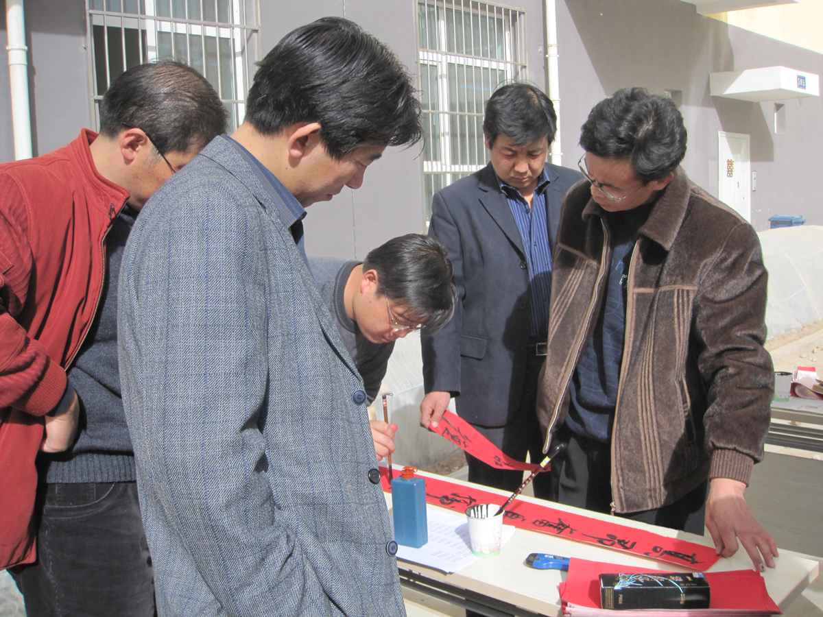 春节前夕,青海公司组织书法爱好者冒着严寒为职工义务写春联,仅农历腊月23日一天,书法爱好者们为全公司职工免费书写春联200多幅,把美好的新年祝福及和谐之声送进职工家庭。(青海公司 王普)