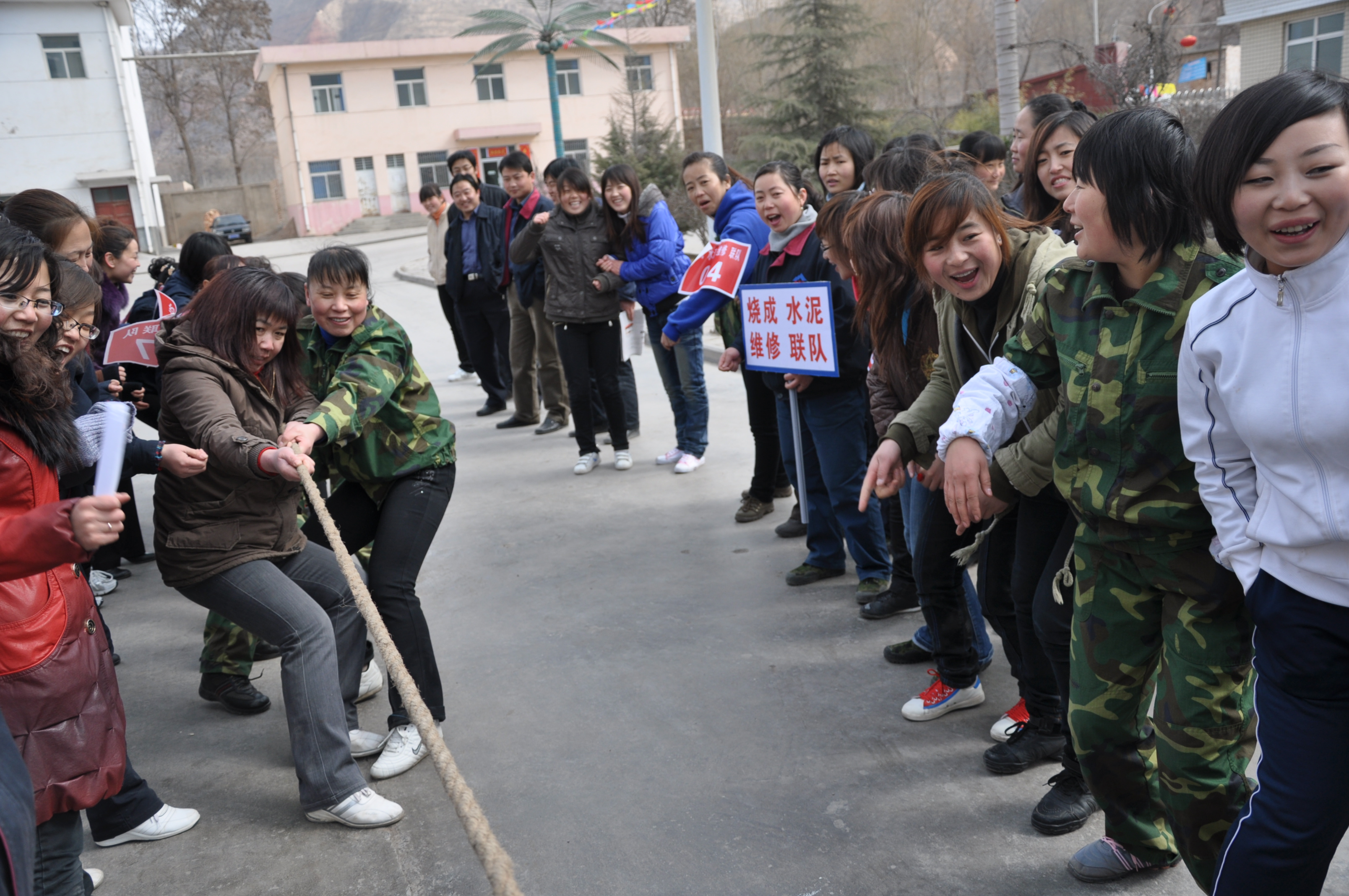 日前,甘谷公司举行的以“我锻炼,我健康,我参与,我快乐”为主题的女职工趣味活动,精彩纷呈,热闹非凡,大大丰富了职工的生活。图为拔河的情景。(甘谷公司 张宏儒 报道)
