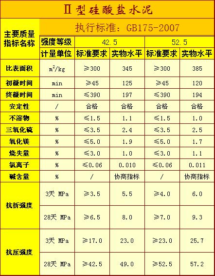 “祁连山”牌硅酸盐水泥产品实物质量与国家标准对比表