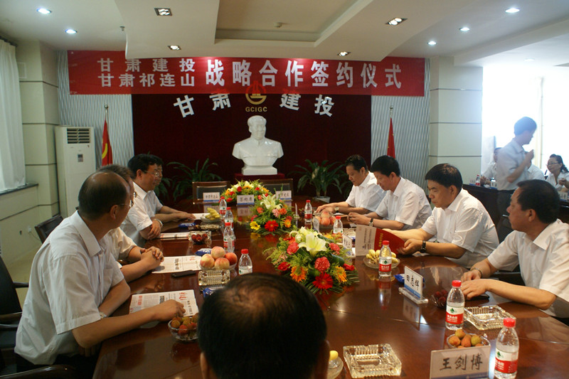 本网讯 6月27日,公司与甘肃建投集团举行战略合作签约仪式,公司领导脱利成、林海平、罗鸿基与甘肃建投集团领导苏海明、王世新、黄起宏出席签约仪式。公司副总裁林海平与甘肃建投副总经理黄起宏代表双方在战略合作协议上签字。
