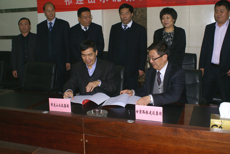 本网讯 11月24日,公司与甘肃路桥建设集团在公司四层会议室签署了为期两年的水泥产品供销战略合作协议。公司总裁刘继彬、副总裁林海平,甘肃路桥集团董事长兼总经理刘建勋、副总经理姜敏、张伟等人参加签约仪式。刘继彬、刘建勋分别代表双方在合作协议上签字。