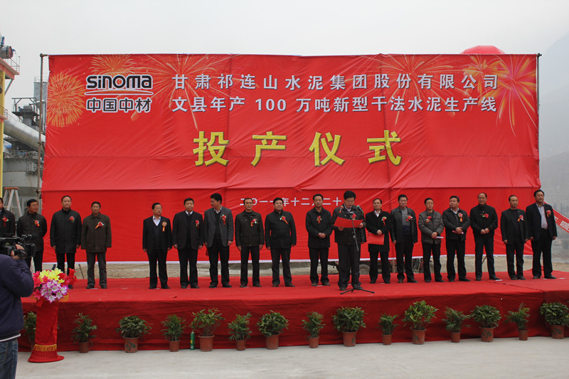 图为文县年产100万吨新型干法水泥生产线投产仪式现场。