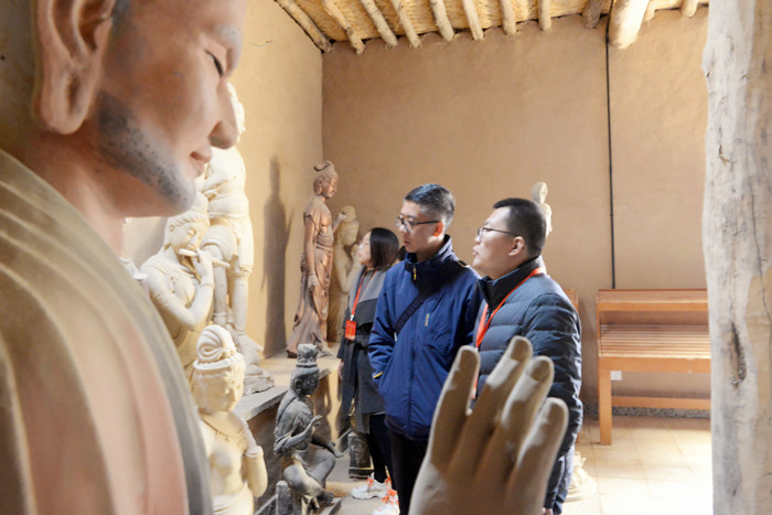 14日上午,劳模先进代表们走进莫高里工匠村,实地了解和感受莫高窟彩塑、壁画制作、?;ず痛屑家?。通过聆听讲解、亲身感受等方式,大家对莫高窟彩塑从龙骨制作、初步塑形、细节塑造、打磨晾干、妆彩上色等主要制作工序有了系统了解,对我国古代工匠在雕塑、绘画、营造、建筑等方面展现出的高超水平表示赞叹,对当代敦煌学研究和敦煌文物?;ぜ凹家沾兄杏肯殖龅哪芄で山潮硎厩张濉4蠹曳追妆硎?,要继承和发扬工匠精神,将“精进技能,追求卓业”融入到自己的本职工作中,在促进个人能力提升的同时,为企业高质量发展贡献力量?! ?/div>