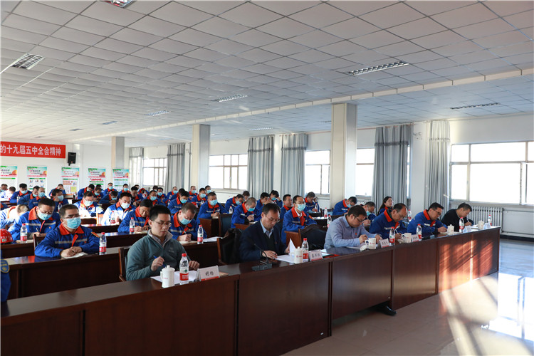 本网讯 11月19日,中国建材股份党委委员、副总裁张金栋到宏达公司调研指导工作,并按照中国建材集团党委、中国建材股份党委“党课开讲啦”活动要求讲授了专题党课,股份公司党委书记蔡军恒陪同调研并主持党课。宏达公司领导班子成员、中层以上管理人员、党员共80余人聆听了党课。