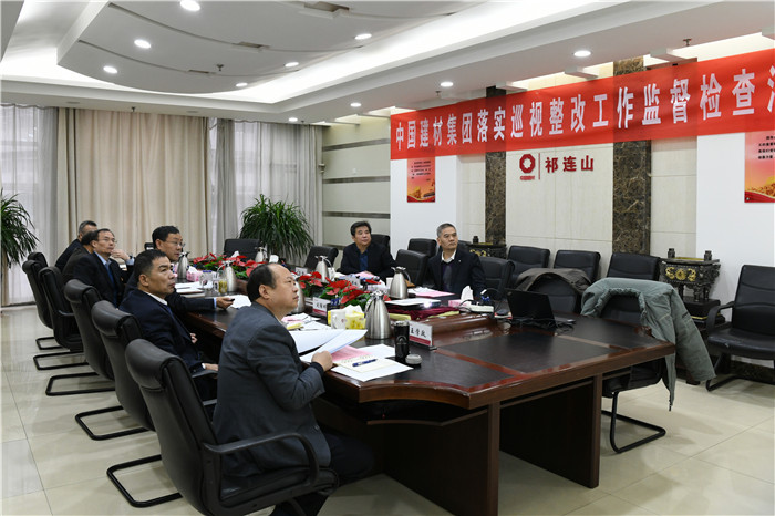 本网讯 11月25日,中国建材集团党委常委、纪委书记杨杰到公司调研指导工作,就落实巡视整改工作监督检查。中国建材集团纪委副书记王禄田,公司领导班子成员脱利成、刘继彬、蔡军恒、王学政、魏士渊,党群、纪检、总裁办公室等部门负责人参加会议。